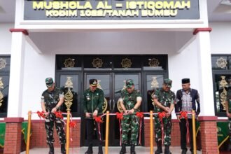 NARASINUSANTARA.COM, TANAH BUMBU – Pangdam XXII/Tambun Bungai, Mayjen TNI Zainul Arifin bersama Bupati Andi Rudi Latif meresmikan Mushola Al Istiqomah Kodim 1022/Tanah Bumbu, Kamis, (1/1/2026), Simpang Empat. Bupati Andi Rudi Latif mengatakan Pemerintah Kabupaten Tanah Bumbu menyampaikan ucapan selamat datang kembali di Bumi Bersujud kepada Pangdam XXII/Tambun Bungai beserta jajarannya melaksanakan kunjungan kerja dalam rangka pembinaan satuan. Ia mengatakan Kehadiran Pangdam beserta jajarannya merupakan…