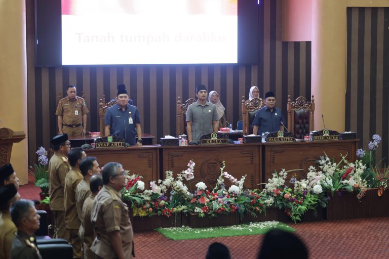 NARASINUSANTARA.COM, TANAH BUMBU – Bupati Tanah Bumbu Andi Rudi Latif melalui Staf Ahli Bidang Ekonomi Keuangan dan Pembangunan Dwi Dibyo Raharjo menghadiri Rapat Paripurna DPRD dalam rangka Pemandangan Umum Fraksi terhadap Rancangan Peraturan Daerah (Raperda) Laporan Pertanggungjawaban (LPj) APBD Tahun Anggaran 2024. Bertempat di Ruang Sidang DPRD Tanah Bumbu, Senin (16/06/2025).