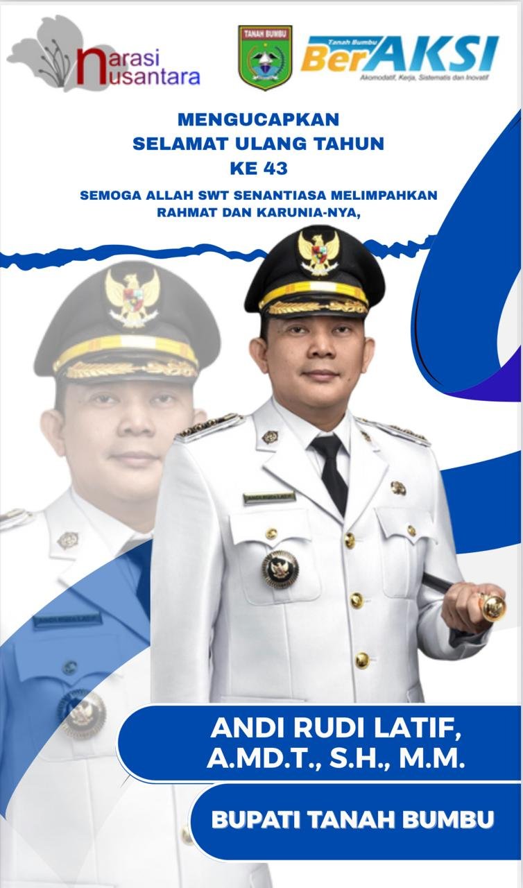 NARASINUSANTARA.COM, TANAH BUMBU – Milad ke 43 Bupati Tanah Bumbu, Andi Rudi Latif, A.Md.T., S.H., M.M.