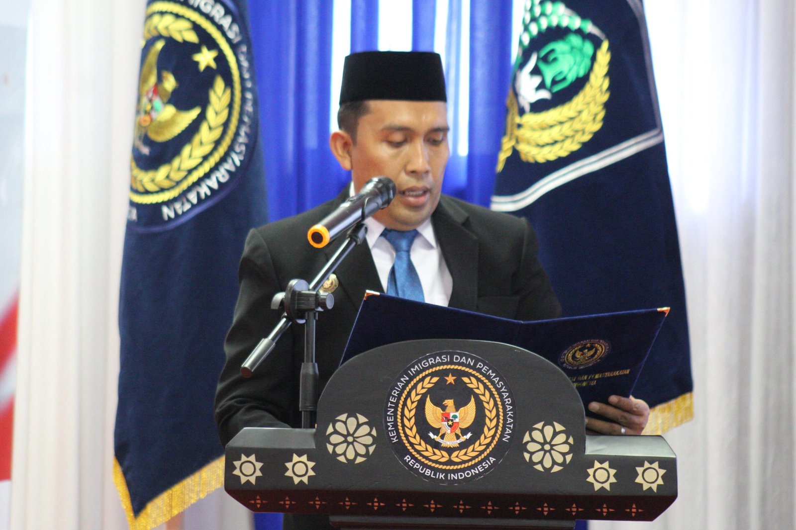 Bupati Tanah Bumbu Andi Rudi Latif melalui Plt Asisten Pemerintahan dan Kesejahteraan Rakyat, M. Putu Wisnu Wardhana membacakan sambutan Menteri Imigrasi dan Pemasyarakatan RI, Jenderal Pol. (Purn) Drs. Agus Andrianto, menyampaikan pemberian remisi merupakan wujud penghargaan atas perubahan perilaku positif narapidana serta bagian dari upaya pemajuan dan perlindungan Hak Asasi Manusia.