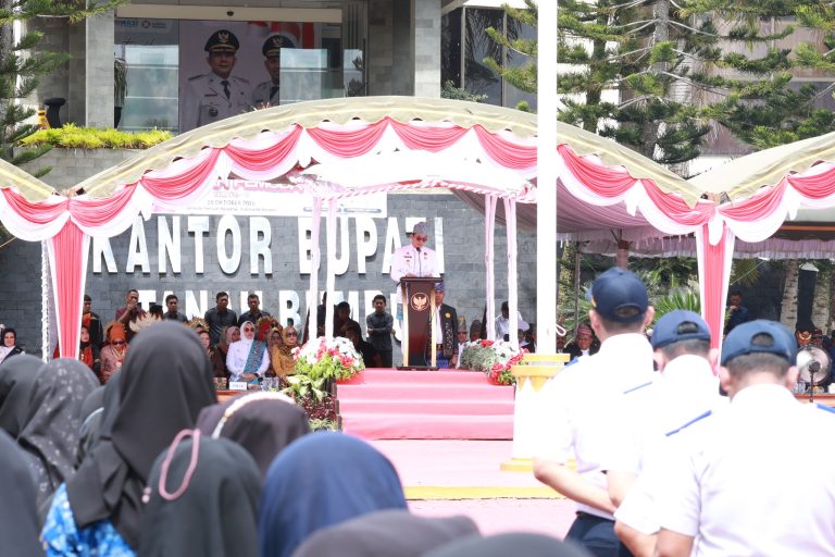 NARASINUSANTARA.COM, TANAH BUMBU – Suasana khidmat dan penuh semangat kebangsaan tampak di halaman Kantor Bupati Tanah Bumbu pada pelaksanaan Upacara Peringatan Hari Sumpah Pemuda ke-97 Tahun 2025, Selasa (28/10/2025). Ratusan peserta mengenakan berbagai pakaian adat Nusantara, menampilkan keberagaman budaya Indonesia yang indah dalam satu semangat persatuan.