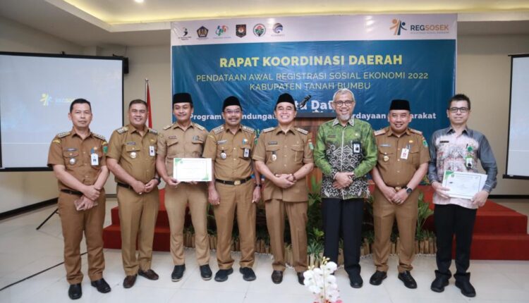NARASINUSANTARA.COM, BATULICIN – Badan Pusat Statistik (BPS) Kabupaten Tanah Bumbu menggelar Rapat Koordinasi Daerah terkait Pendataan Awal Registrasi Sosial Ekonomi (Regsosek) Tahun 2022 Kabupaten Tanah Bumbu di Aula Hotel Ebony Batulicin, Selasa (20/09/2022).