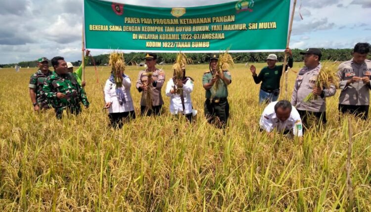 Dukung Program Ketahanan Pangan Nasional, Koramil 1022-07/Angsana Turut Panen Raya Padi Seluas 60 Hektar