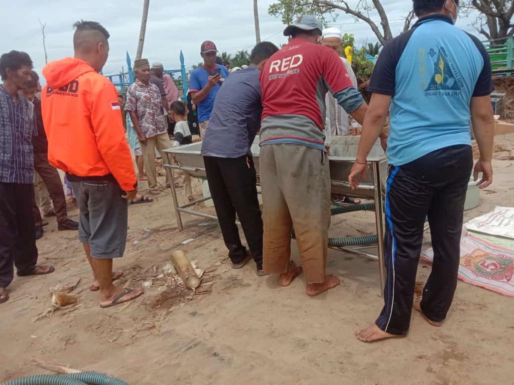 Banjir Rob kali ini sangat memprihatinkan bagi warga setempat, makam tua di Desa Mattone Kab Tanbu terimbas kerusakan. Kondisi kain kafan milik mayat dan peti makam dalam kondisi berhamburan, beberapa makam telah di bongkar. Warga telah merapikan kembali makam tersebut dibantu Petugas BPBD setempat, TNI dan Kepolisian menggunakan alat excavator mini. (narasinusantara.com/Aaron)
