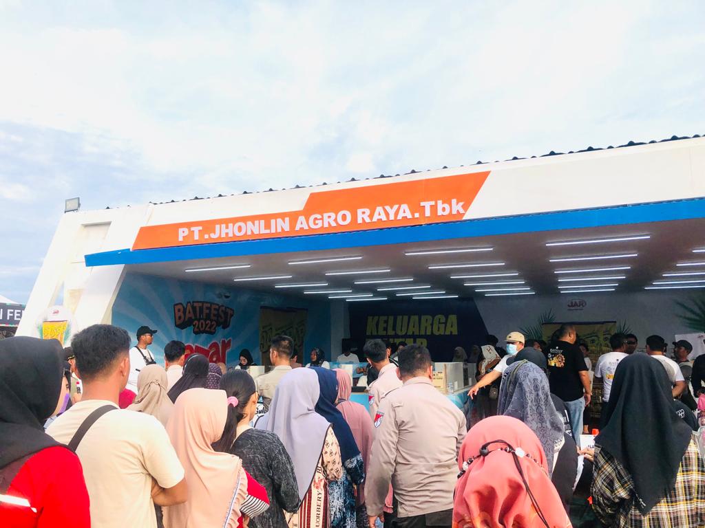 NARASINUSANTARA.COM, BATULICIN – Informasi terbuka, bazzar murah dengan paket minyak goreng dan gula, stand PT Jhonlin Agro Raya (JAR) dan PT Prima Alam Gemilang (PAG) di Batulicin Festival (Batfest) Tahun 2022, kebanjiran pembeli.