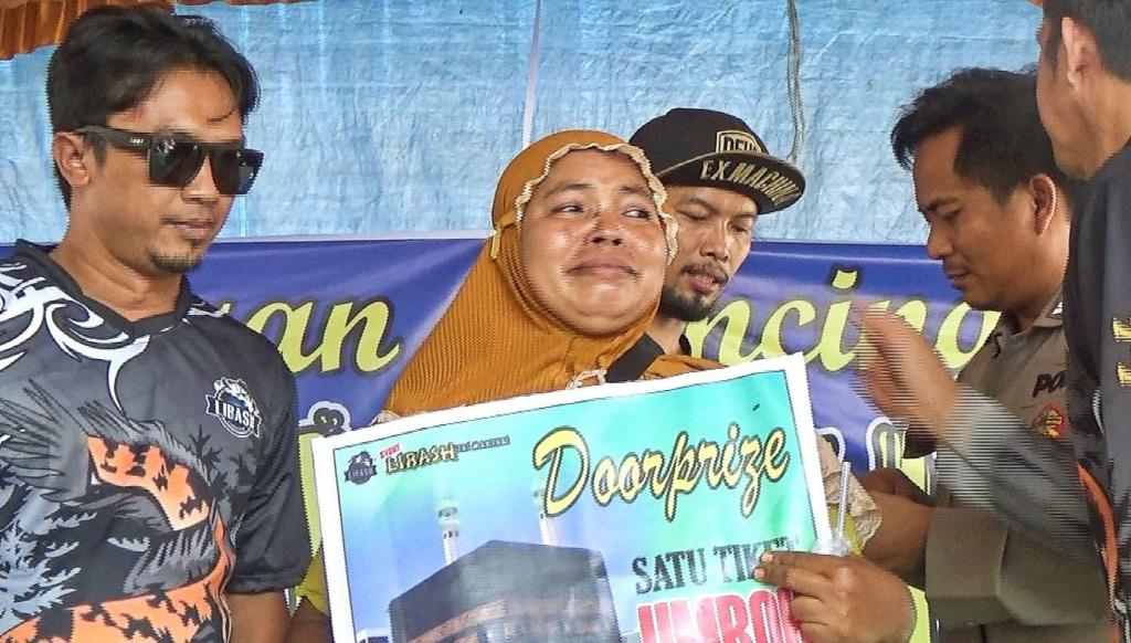 Tiket umroh itu merupakan doorprise utama, yang di siapkan oleh panitia lomba mancing ikan di kolam sepanjang 600 meter, dengan ikan yang di tabur sebanyak 1 ton di perkebunan sawit Desa Tri Martani.