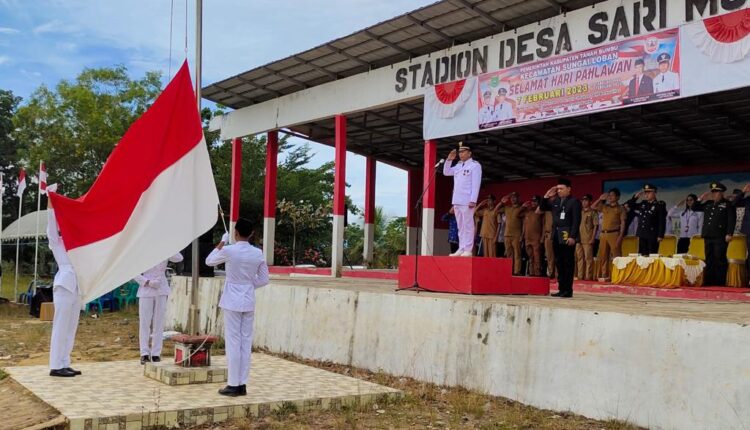 Upacara peringatan hari Pahlawan 7 Februari yang diselenggarakan dilapangan Sari Mulya Kecamatan Sungai Loban berjalan Khidmat, Selasa (7/2/2023).