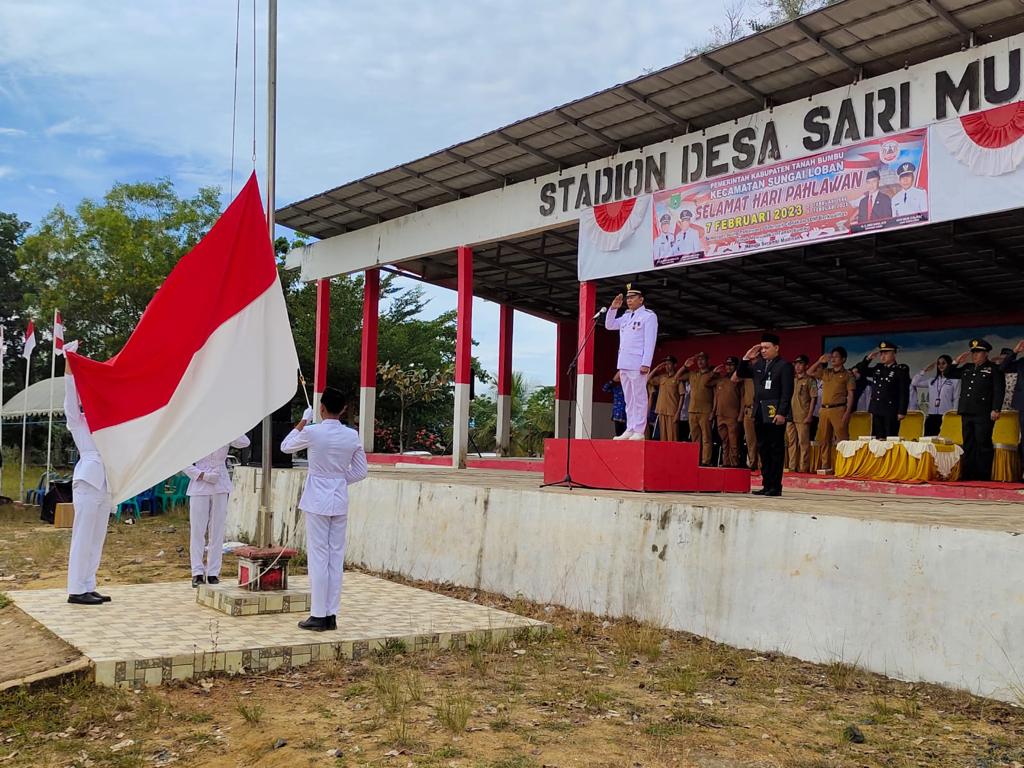 Upacara peringatan hari Pahlawan 7 Februari yang diselenggarakan dilapangan Sari Mulya Kecamatan Sungai Loban berjalan Khidmat, Selasa (7/2/2023).