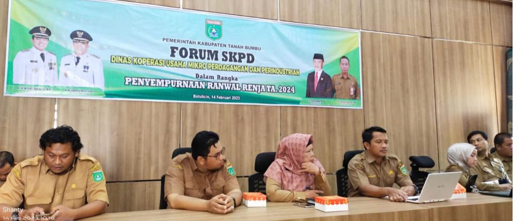 NARASINUSANTARA.COM, BATULICIN – Dinas Koperasi Usaha Mikro Perdagangan dan Perindustrian Kabupaten Tanah Bumbu (Dinas KUMP2 Kab Tanbu) menggelar Forum Perangkat Daerah (FPD) Penyusunan Rancangan Awal (Ranwal) Rencana Kerja (Renja) Tahun Anggaran 2024, bertempat di Ruang Rapat Kantor DKUMP2 Tanbu di Gunung Tinggi, Batulicin, Selasa (14/2/2023).