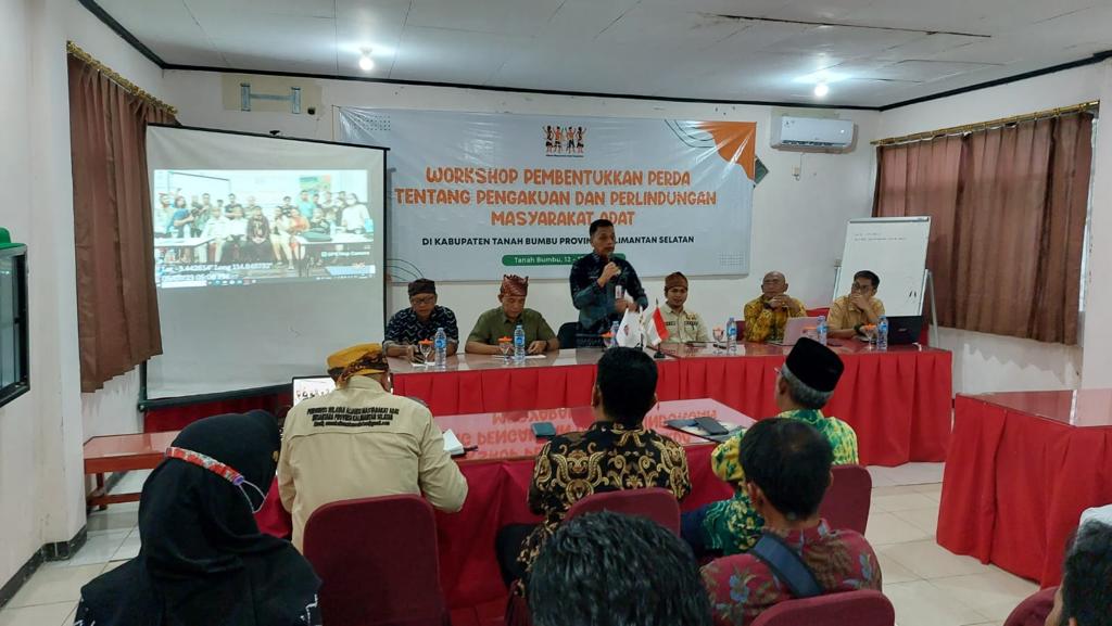 NARASINUSANTARA.COM, TANAH BUMBU – Pemerintah Kabupaten Tanah Bumbu (Pemkab Tanbu) melalui Badan Kesatuan Bangsa dan Politik (Bakesbangpol), menghadiri Workshop Pembentukan Perda tentang Pengakuan dan Perlindungan Masyarakat Adat di Kabupaten Tanah Bumbu di Hotel Hill Mar Kec. Simpang Empat, Kamis (13/07/2023)