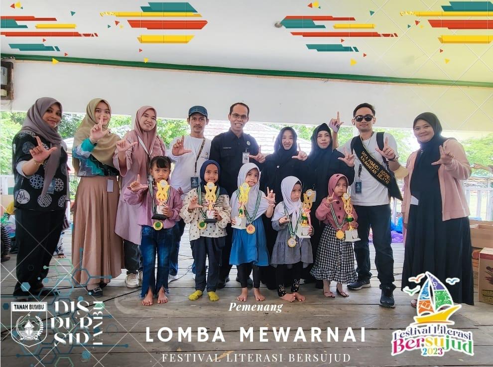 NARASINUSANTARA.COM, TANAN BUMBU – Meriahnya Lomba Mewarnai serta Talkshow Literasi pada ajang Festival Literasi Bersujud (FLB) Tahun 2023, Dinas Perpustakaan dan Kearsipan (Dispersip) Kabupaten Tanah Bumbu (Kab Tanbu).