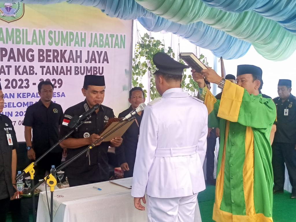 NARASINUSANTARA.COM, TANAN BUMBU – Tertangkap kamera keberadaan, Bupati Tanah Bumbu HM Zairullah Azhar turun ke desa melakukan pelantikan dan pengambilan sumpah Kepala Desa terpilih hasil Pilkades Serentak Gelombang Kedua Tahun 2023. Pelantikan bertempat di desa masing-masing ini telah memasuki Kecamatan Simpang Empat pada hari Kamis (26/10/2023).