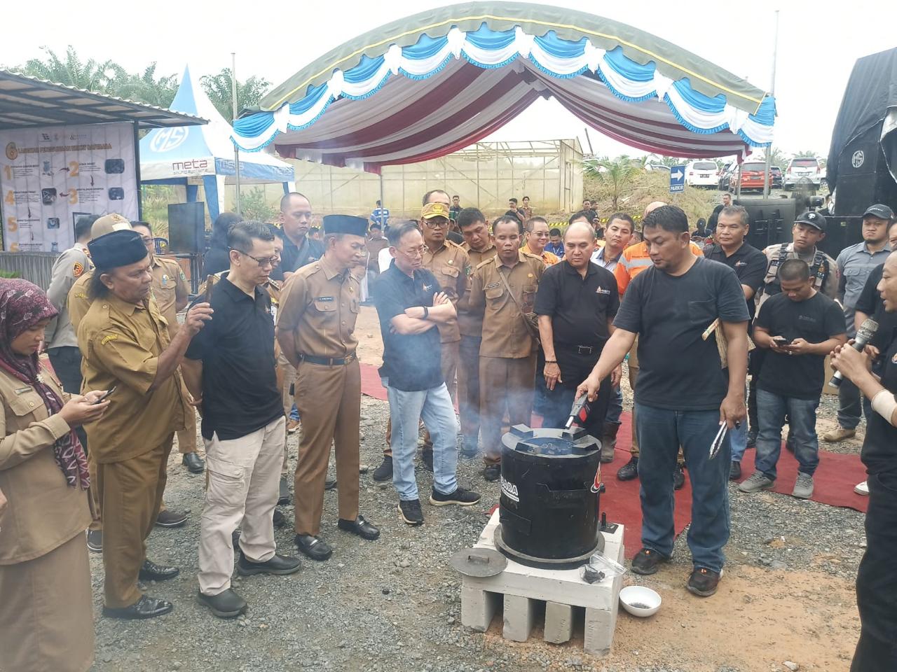 Acara ini juga dihadiri oleh jajaran manajemen PT BIB yang bersama-sama dengan Sekda menyaksikan simulasi penggunaan kompor briket batubara.