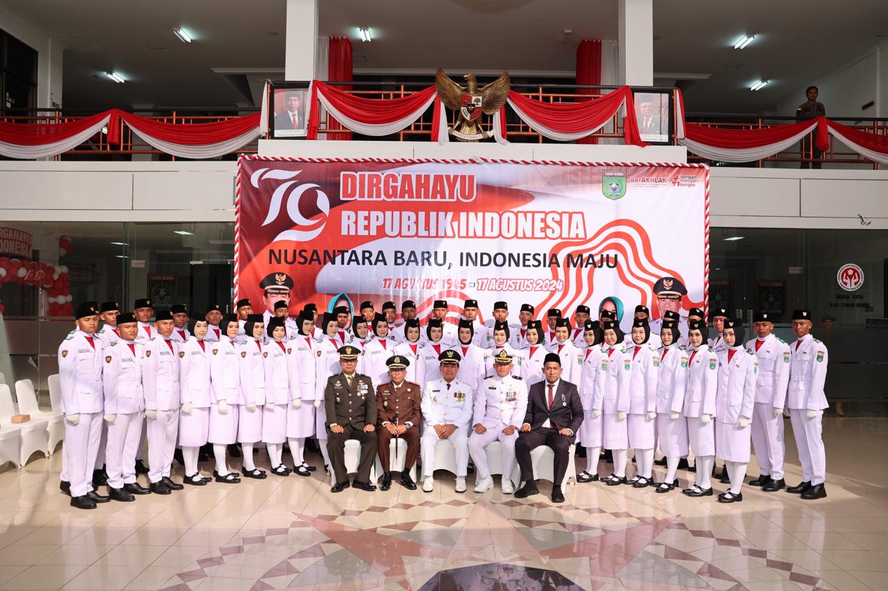 Pasukan Pengibar Bendera Pusaka yang terdiri dari 48 putra-putri terbaik di bawah binaan Badan Kesatuan Bangsa dan Politik (Bakesbangpol) Kabupaten Tanah Bumbu, sukses menjalankan tugas mereka dengan penuh semangat.