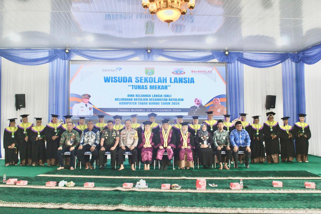 Bupati Tanah Bumbu, Zairullah Azhar melalui Asisten Bidang Pemerintahan dan Kesra, Eka Safruddin menyampaikan pada kesempatan yang berbahagia ini, dalam rangka Wisuda Lansia Tunas Mekar dari BKL Kelurahan Batulicin Kecamatan Batulicin, Pemda mengucapkan selamat kepada wisudawati yang telah berhasil menyelesaikan program di Sekolah Lansia Tahun 2024 sebagai bukti semangat dan ketangguhan para lansia.