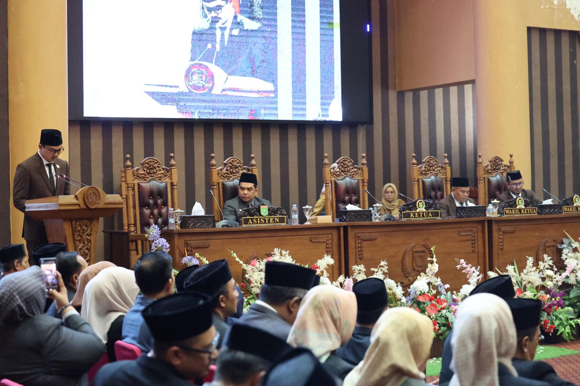 Sidang dipimpin oleh Wakil Ketua II, Syabani Rasul, dan dihadiri oleh Asisten Pemerintahan dan Kesejahteraan, Eka Safrudin. Dalam kesempatan itu, Ketua DPRD, Andrean Atma Maulani, menyampaikan bahwa rapat ini memperhatikan Putusan Mahkamah Konstitusi Republik Indonesia Nomor 27/PUU-XXII/2024.