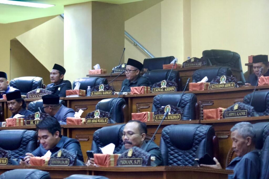 NARASINUSANTARA.COM, TANAH BUMBU – Dewan Perwakilan Rakyat Daerah (DPRD) Kabupaten Tanah Bumbu mengadakan Rapat Paripurna dalam rangka pengambilan keputusan terhadap Rancangan Peraturan Daerah (Raperda) tentang Pembentukan Desa, bertempat di Ruang Rapat Utama DPRD Tanah Bumbu, pukul 16.15 Wita, Rabu (26/11/2025).